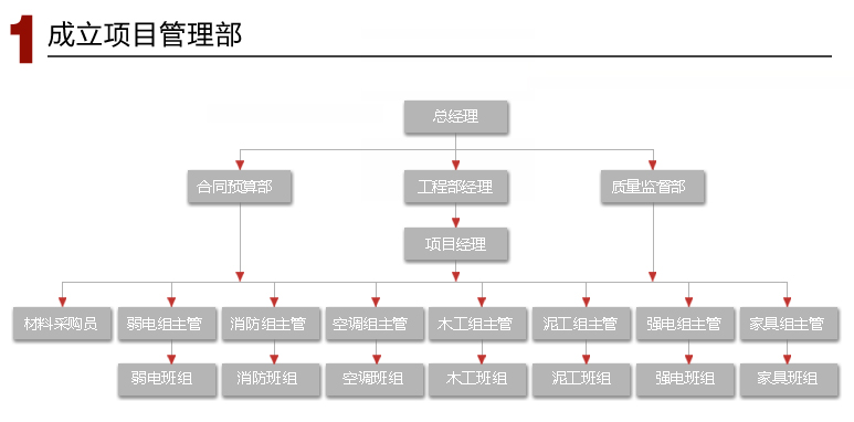 領(lǐng)企裝飾深知一個(gè)優(yōu)秀的項(xiàng)目是靠理性、**的多層次管理出來(lái)的,所以針對(duì)每一個(gè)項(xiàng)目都成立項(xiàng)目管理部,由總經(jīng)理干預(yù)工程部質(zhì)量監(jiān)督,合同預(yù)