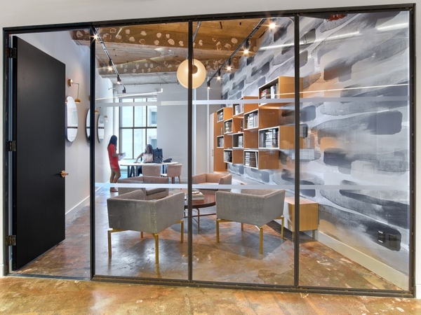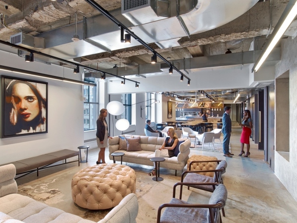今天,上海辦公室裝修設(shè)計公司-領(lǐng)企裝飾要與大家分享的是,紐約WMEIMG公司的辦公室裝修設(shè)計。其設(shè)計風(fēng)格屬于創(chuàng)意工業(yè)型,水泥色裸磚墻和灰暗色密閉式空間里,在亮黃色LED燈光的映照下,個性的工業(yè)風(fēng)怎少得了鐵藝和復(fù)古元素的裝飾單品,褪化掉過度的做舊和昏暗感,顯得神秘而又溫馨。