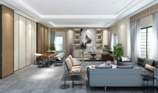 2、現(xiàn)代輕奢風(fēng)辦公樓接待大廳裝修:整個辦公空間分為頂、墻、地三個部分,頂面以圓形和橢圓形疊級吊頂造型裝飾,輕松、休閑的燈光營造氛圍,在接待客人談生意時,裝修也能體現(xiàn)一家老板的品味與性格,還有該公司的實(shí)力,公共區(qū)域墻面采用高檔木飾面板裝飾,地面則是地毯滿鋪??偨?jīng)理辦公室裝修設(shè)計(jì)中重要的是超大的落地窗,總經(jīng)理工作上的壓力往往是常人難以感同身受的,站在三十多樓的高樓里,可以一覽城市風(fēng)光,居高臨下俯視這座城市,眺望遠(yuǎn)方舒緩內(nèi)心的壓抑。