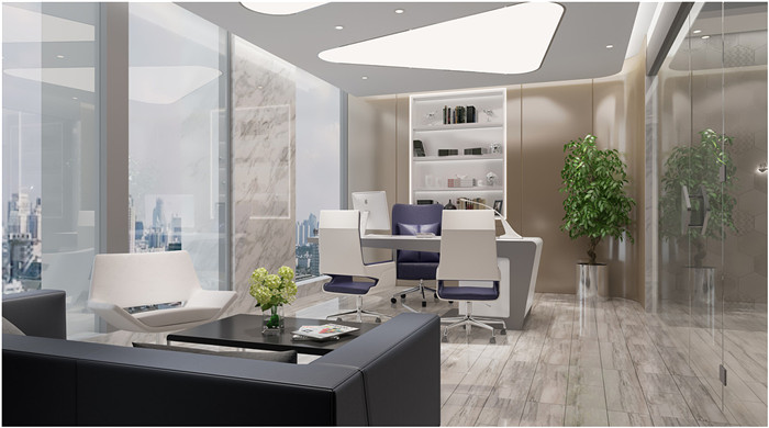 2、科技感辦公室裝修設(shè)計(jì)案例:辦公前臺空間的設(shè)計(jì),設(shè)計(jì)師對整個(gè)形象墻的設(shè)計(jì)是比較特別的,也富有其藝術(shù)感,容易較讓人印象深刻,材質(zhì)的紋路更加有質(zhì)感。接待室的設(shè)計(jì),設(shè)計(jì)師主要的目的就是將自然之風(fēng)引入室內(nèi),綠植的出現(xiàn)是此空間一大的亮點(diǎn)。辦公室設(shè)計(jì)采用多元化的設(shè)計(jì)元素,力求整體風(fēng)格與整棟大樓協(xié)調(diào)、清新、大氣的外觀設(shè)計(jì)保持一致,既突顯陽剛的企業(yè)特質(zhì),又蘊(yùn)涵貴公司新興而**沖擊力的蓬勃發(fā)展之勢!總經(jīng)理辦公室的設(shè)計(jì),設(shè)計(jì)師更偏向于簡潔大方,來體現(xiàn)辦公室的不凡。