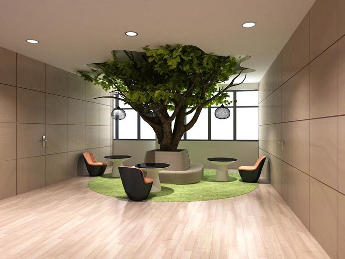 3、辦公室設(shè)計(jì)風(fēng)格整體以現(xiàn)代風(fēng)格為主,表現(xiàn)企業(yè)與時(shí)俱進(jìn)的理念;形象墻采用石材,玻璃高隔滿足空間的通透性,動(dòng)線簡潔而流暢。會(huì)議室頂面方通結(jié)合圈定,滿足消防的同時(shí),讓頂面不顯壓抑。走廊是人流量較多的地方,辦公室走廊裝修設(shè)計(jì)地面選擇的是瓷磚,頂面對應(yīng)做了石膏板吊頂,上下呼應(yīng)。
