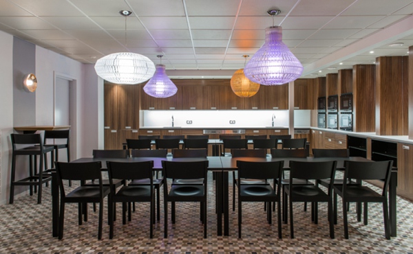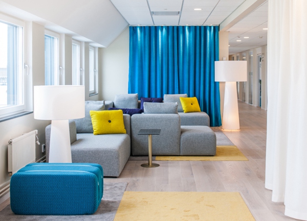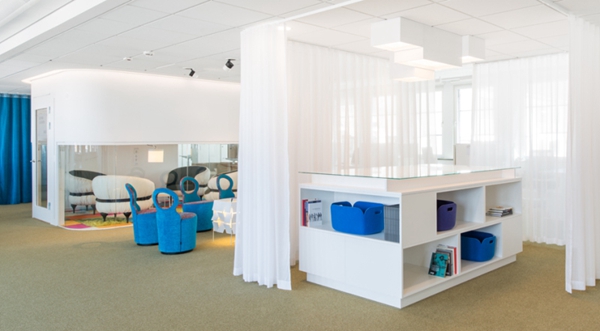 領(lǐng)企設(shè)計(jì)團(tuán)隊(duì)對(duì)原來的空間進(jìn)行了驚人的改造,煥然一新的辦公環(huán)境不僅現(xiàn)代感十足而且多姿多彩,舒適溫馨的氛圍充斥著家的感覺。室內(nèi)裝飾的亮點(diǎn)應(yīng)該是各種色彩的舒適地毯、休息椅、窗簾布藝和造型時(shí)尚的家具,在該項(xiàng)目中,設(shè)計(jì)師還加入了更為強(qiáng)烈的藝術(shù)元素,辦公室和會(huì)議室的墻壁上裝飾了插花圖案以模仿紋理效果和顏色組合。此外,在會(huì)議室的墻壁是模擬各種外墻效果,用瓷磚、馬賽克、玻璃磚或彩色玻璃演繹各種生活中常見的場(chǎng)景。