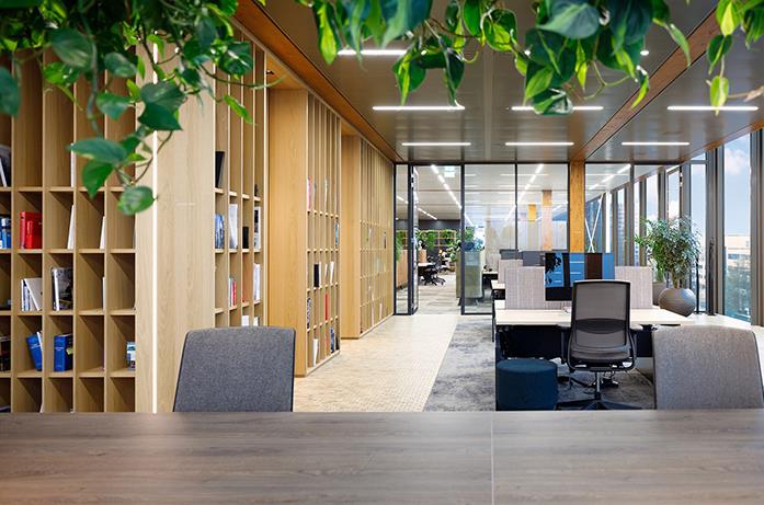 2、房地產(chǎn)公司溫暖如家般的智能辦公室設計:開放空間劃分為三個區(qū)域,它們以豐富多元的場景設計,讓人們自由選擇喜愛的工作方式。圍繞著中庭區(qū)以居家的氛圍規(guī)劃以或坐、或站的休閑位置。喜歡寧靜的人們可以去別墅形式的區(qū)域,這里以現(xiàn)代住宅的構(gòu)造和氛圍來創(chuàng)建。還有以座位和花園秋千營造的“客廳”,一個可以閱讀的圖書區(qū),以及一個可以用作冥想的小小“植物園”。在這充滿活力的城市空間里設有兩間會議室和一處科技游樂場,用于展示和測試3D打印家具和虛擬現(xiàn)實等新技術的創(chuàng)新發(fā)展。酒吧區(qū),擁有較棒的城市景觀視野,也是**的會議場所,(商務)午餐、喝杯小酒、玩一場桌上足球比賽,這里就是較好的能量充電站。?