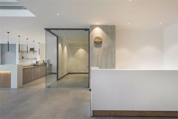 辦公室裝修設(shè)計采用全天候辦公的設(shè)計理念,辦公場所能隨著時間變化而將環(huán)境進行相應(yīng)變化,為員工提供更加自由輕松的辦公氛圍。門廳區(qū)域摒棄傳統(tǒng)冷冰冰的接待形式,由吧臺、茶歇區(qū)、健康辦公區(qū)、討論區(qū)等功能組合而成,把互聯(lián)網(wǎng)開放性思維植入到日常辦公生活中。同時利用健康跑道地毯將整個空間串聯(lián)起來,讓空間更加具有活力和生氣。
