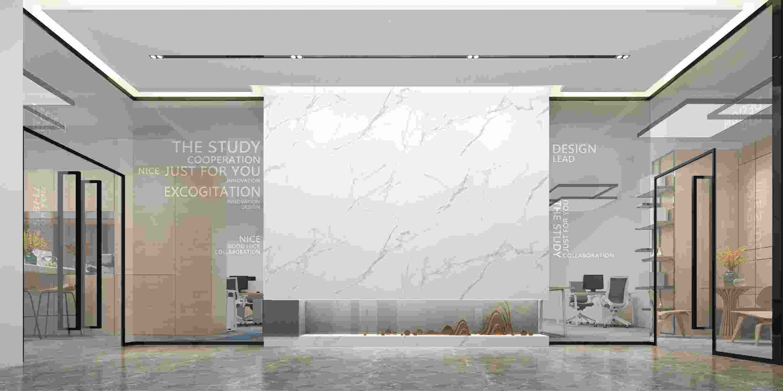 1、首先根據(jù)隔公司的使用需求確認(rèn)是否放置前臺,外訪客戶多,面積比較大的公司常規(guī)都會放置前臺,給人感覺更正式,信賴感更強。公司相對小些的放了前臺還需要特意安排一個人員,所以可以考慮直接設(shè)置背景墻玄關(guān)。