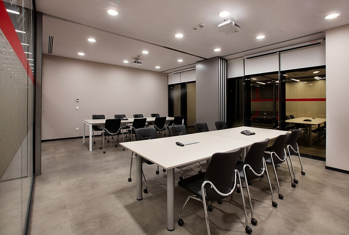 2、其次在上海辦公室設計時,會議室常常被傳統(tǒng)的分割成單獨房間,然而有時候因為公司的人數(shù)原因無法進行統(tǒng)一的大會,但若是規(guī)劃了大型會議室就又會導致會議室數(shù)量減少從而使用不便。針對于這種情況在辦公室裝修時規(guī)劃出一個大會議室,然后使用活動隔斷將其分開,當需要多人統(tǒng)一開會時便可以將活動隔斷打開增加會議室面積。這樣不僅節(jié)省空間也能使空間更為靈活。