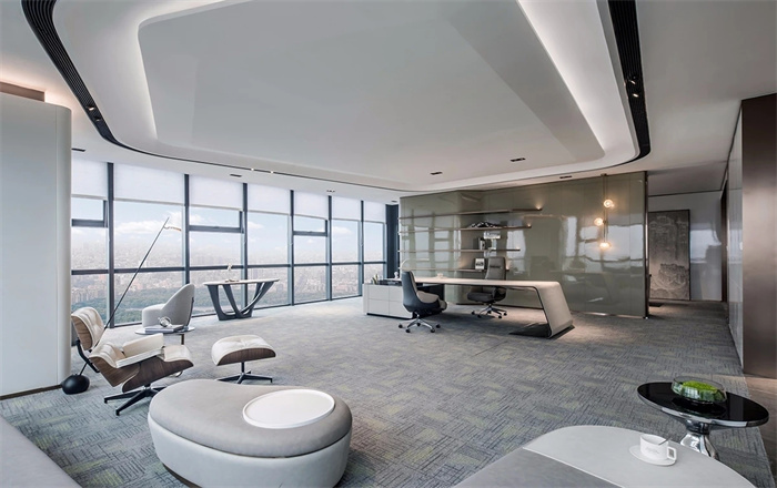 3、一般來講辦公室的獨立辦公室常常裝修為常規(guī)的矩形房間,但是這樣太過大眾化比較死板。這個時候一些公司可以結合公司的屬性和空間特點來進行變換。例如結合空間的柱子以及窗戶,做一些異形的例如切角的更有設計感的獨立辦公室,當然這樣的前提是能夠足夠的實用。獨立辦公室也可以根據(jù)一些有弧形墻面的辦公空間,做一些弧形的墻壁與之相對應,不僅使空間更靈活,也能更好的利用空間的每一寸。