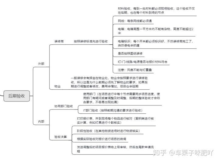 外部溝通主要以物業(yè)溝通和供應(yīng)商溝通為主,首先接觸的是物業(yè),為了方便大家閱讀,先放一張圖這里需要提醒的是,除了常規(guī)的租賃場地信息的溝通及談判外,對于物業(yè)的裝修細(xì)節(jié)提前溝通過了解非常重要,什么可做,什么不可以做,以免裝修好了,物業(yè)驗(yàn)收不合格要修正,這個是非常麻煩的,對于這些信息的把握也是對于風(fēng)險的提前規(guī)避。