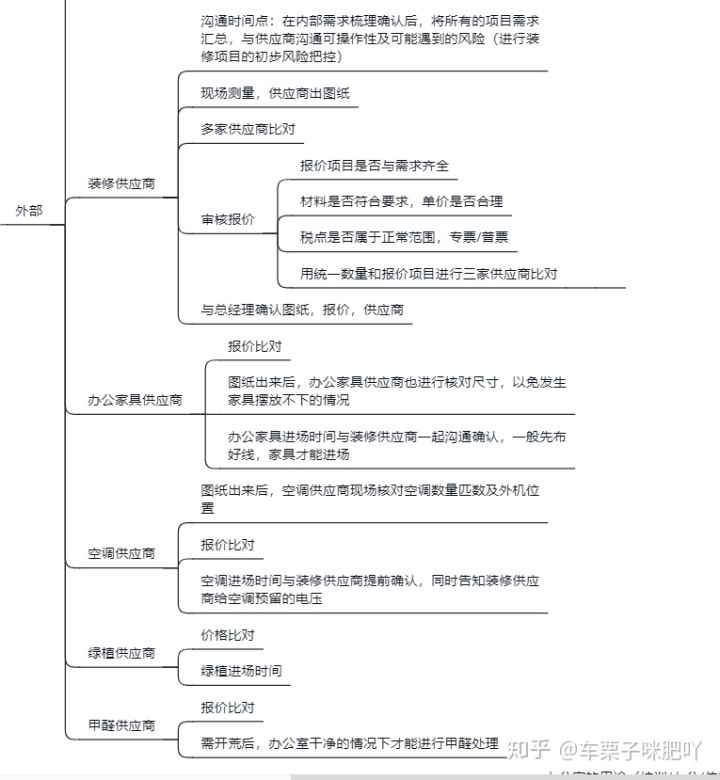 裝修項(xiàng)目需要對接的供應(yīng)商可不止是裝修公司哦,還有涉及整個項(xiàng)目的辦公家具,綠植,甲醛,空調(diào)等統(tǒng)籌,對于不同供應(yīng)商需要注意的事宜,咱們也備注好了哈,大家多多留意哈(另外,需要說明的是,任何項(xiàng)目管理,靠譜的供應(yīng)商能給你省很多心,血與淚的教訓(xùn):供應(yīng)商的選擇一定要靠譜!靠譜!靠譜!