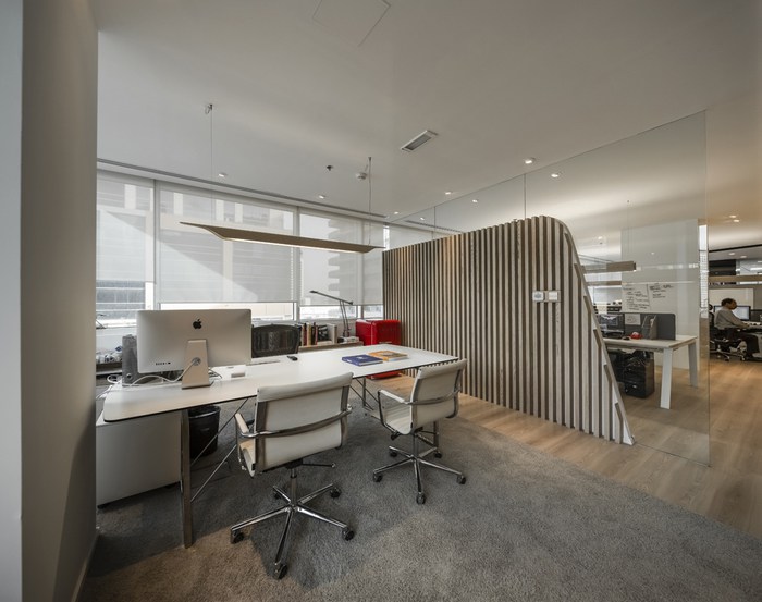 此外,自定義的燈掛在整個(gè)辦公室,可以根據(jù)*終用戶個(gè)性化。設(shè)計(jì)師整合背后隱藏的門廚房。由于沒有窗戶,它的內(nèi)部被設(shè)計(jì)成一個(gè)小咖啡店,考慮到一個(gè)溫暖的氣氛(在墻上的瓷磚,鵝卵石地板磚,更經(jīng)典的廚房單元,咖啡桌)。總體而言,這個(gè)項(xiàng)目已經(jīng)取得了一個(gè)正確的平衡空間,材料和功能,考慮到的挑戰(zhàn),其結(jié)果正是客戶所期待的:一個(gè)友好的工作環(huán)境與觸摸的“哇效果”的游客。