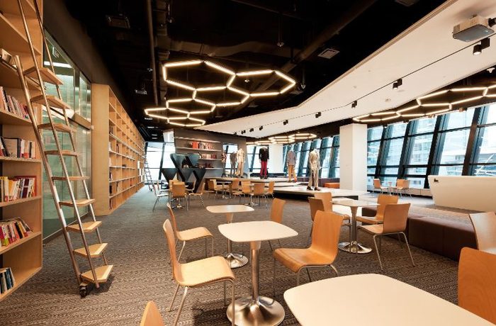 ? ? 德韋爾是一個(gè)工業(yè)材料集團(tuán)公司,化工和時(shí)尚。工作人員可以使用粉末室進(jìn)行頭腦風(fēng)暴和集中工作。辦公空間有不同的主題,根據(jù)他們所工作的品牌。在色彩和高對(duì)比度較強(qiáng)的線性設(shè)計(jì),前衛(wèi)的品牌形象是顯而易見(jiàn)的。