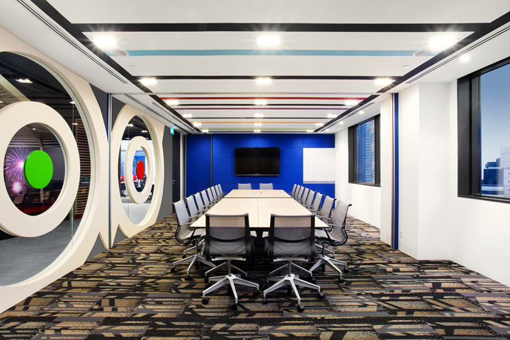 設(shè)計(jì)師依據(jù)“旅游”這個(gè)公司特質(zhì)將旅游的輕松感受應(yīng)用于辦公環(huán)境的設(shè)計(jì),為員工創(chuàng)造一種時(shí)刻在旅途中的新鮮感受,令每天的工作都充滿激情、新鮮與活力。設(shè)計(jì)采用折衷手法,將材料、家具、色彩混搭在一起,淺色橡木飾面與明亮的色彩帶來(lái)多姿多彩的旅游感受;多種開(kāi)放場(chǎng)景、裸露吊頂以及自然光線的運(yùn)用為員工呈現(xiàn)出一個(gè)活力與激情的辦公場(chǎng)所。室內(nèi)設(shè)計(jì)優(yōu)先考慮員工的工作感受,將工作區(qū)安排在玻璃窗附近,擁有開(kāi)敞的視野與自然天光;而將不需要光照的資料室放在中心位置也便于取閱。為了創(chuàng)建人在旅途的氛圍,室內(nèi)的通道也做了小小的設(shè)計(jì),比如路牌、廣告燈箱等會(huì)令人聯(lián)想到旅游中曾經(jīng)熟悉的場(chǎng)景。